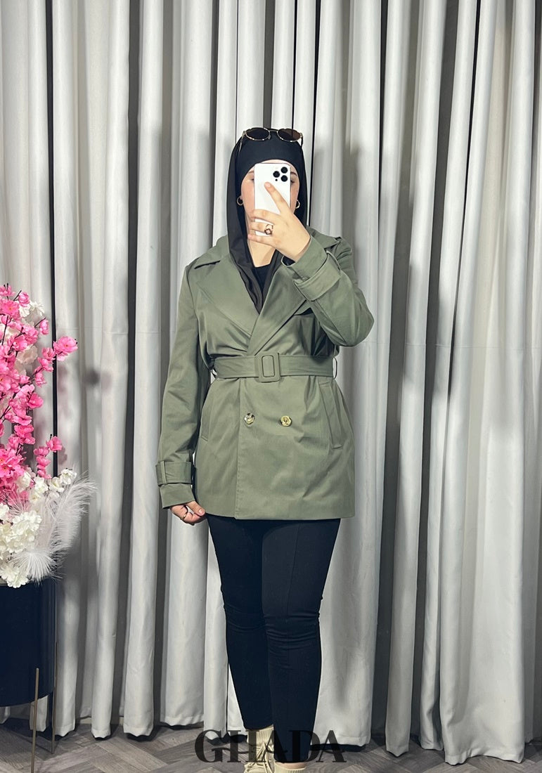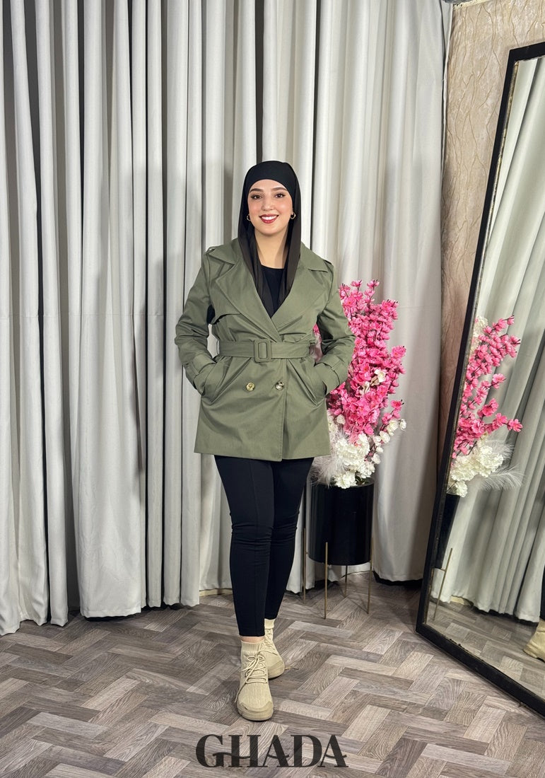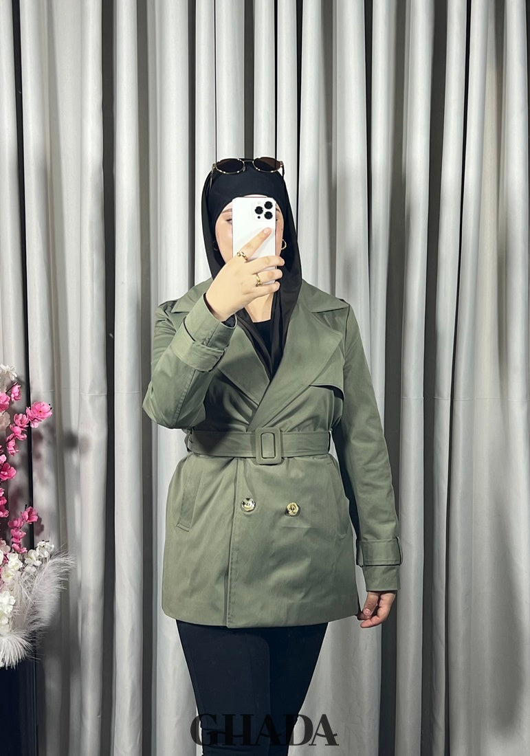 Ajouter un trench-coat magnifique en vert kaki à votre garde-robe signé GHADA, pour un look décontracté ou professionnel, mais surtout élégant et confortable.
