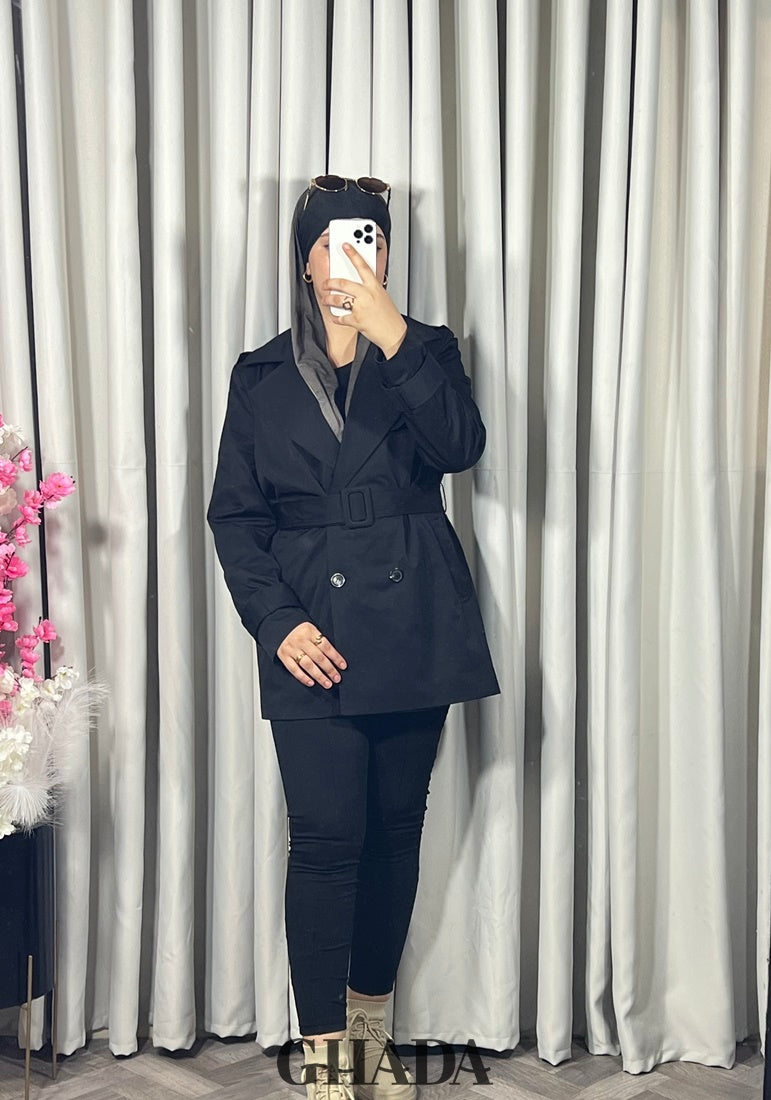 Ajouter un trench-coat magnifique en noir à votre garde-robe signé GHADA, pour un look décontracté ou professionnel, mais surtout élégant et confortable.