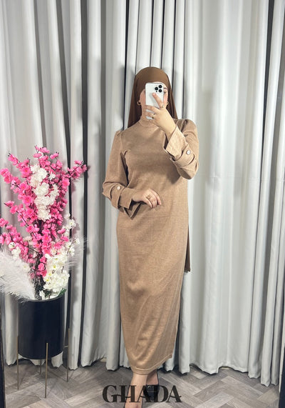 Ajoutez notre robe en maille chic signée GHADA, à votre garde-robe.