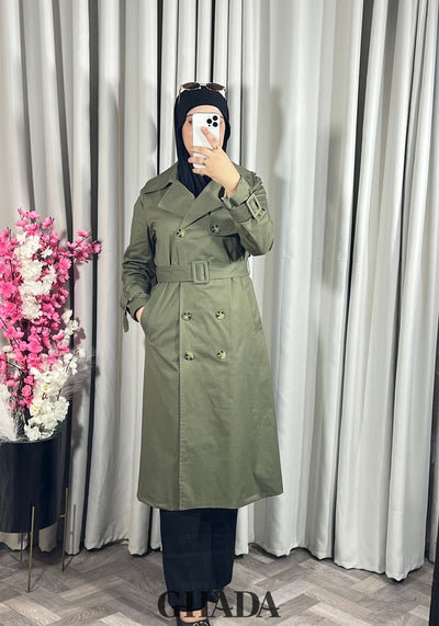 Trench-coat long en vert kaki