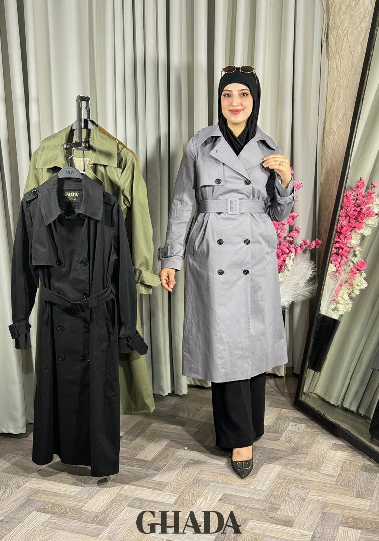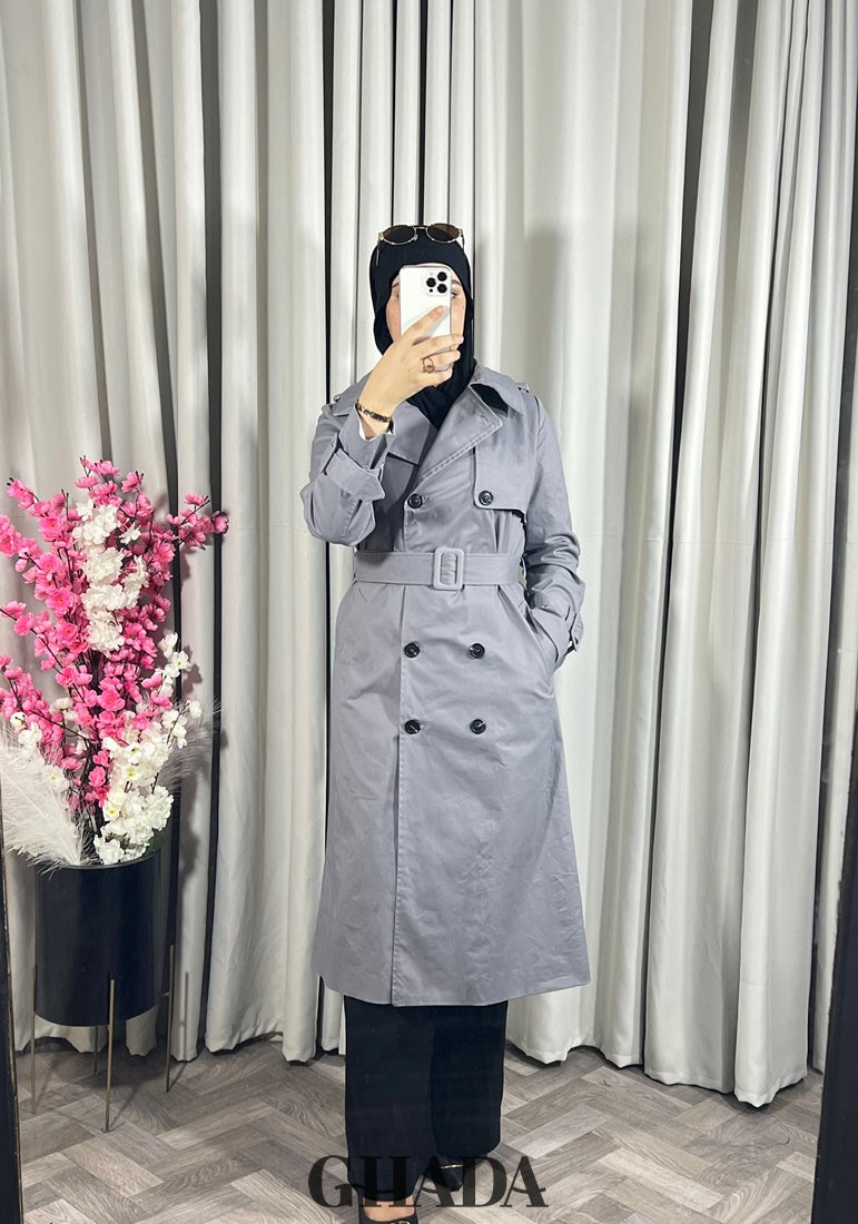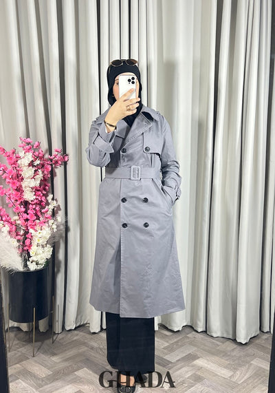 Trench-coat long en gris