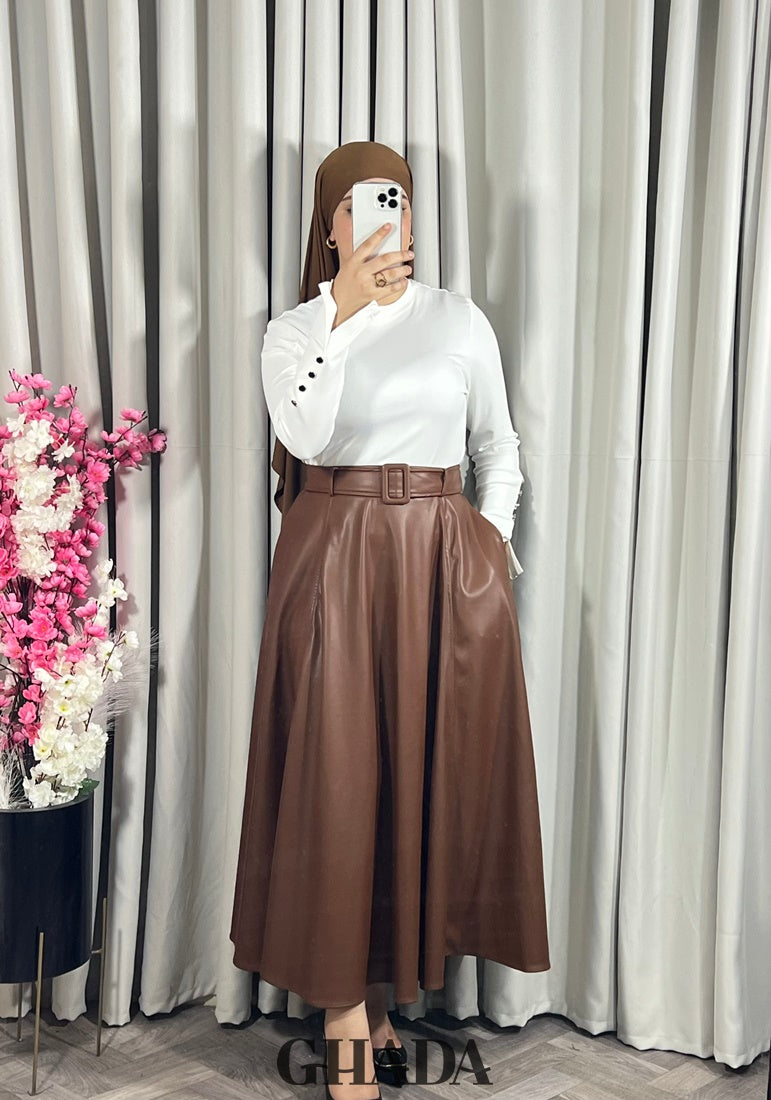 Jupe longue en simili-cuir en marron