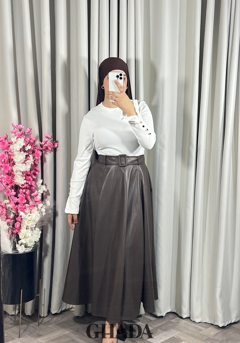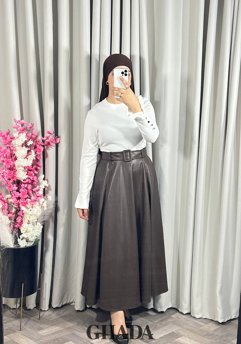 Jupe longue en simili-cuir en marron foncé