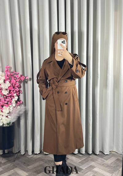 Trench-coat long en marron