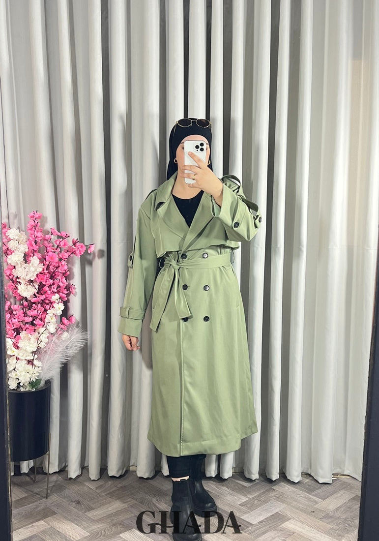 Trench-coat long en vert kaki