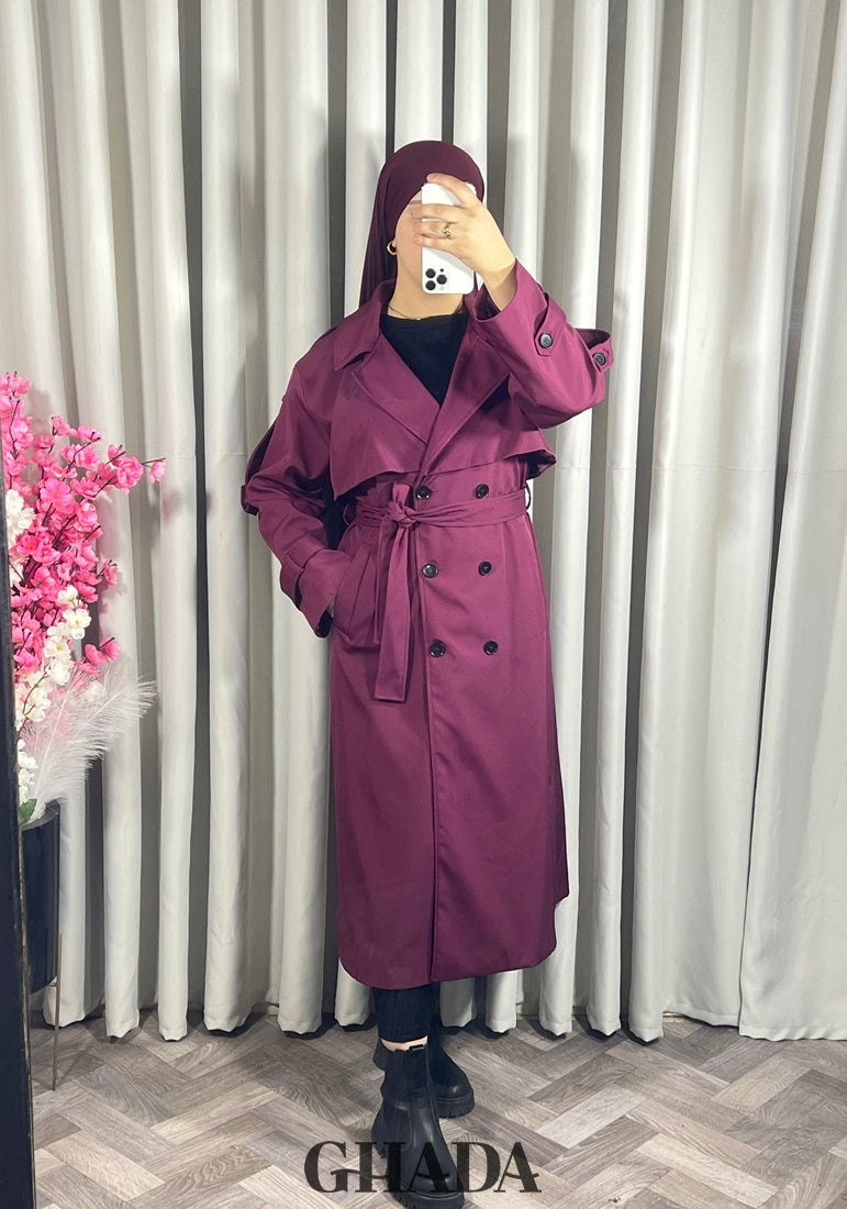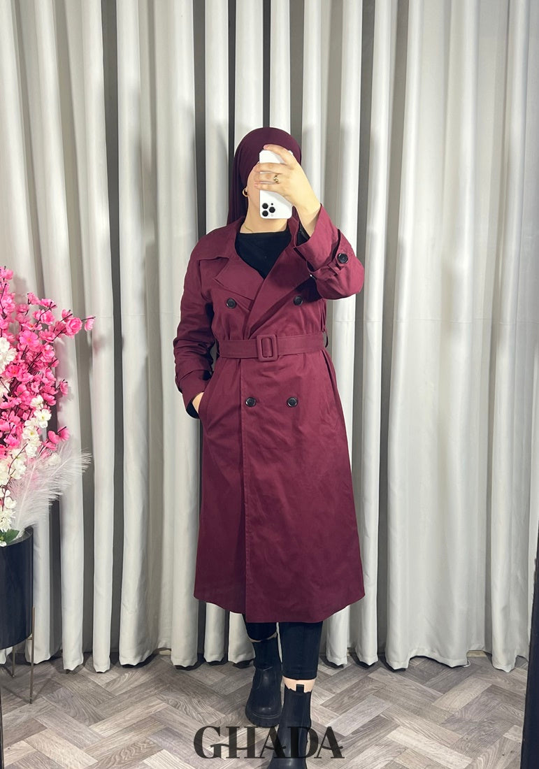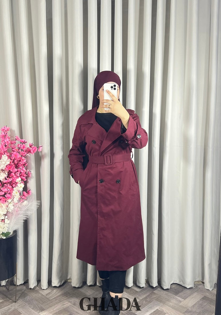 Trench-coat long en bordeaux