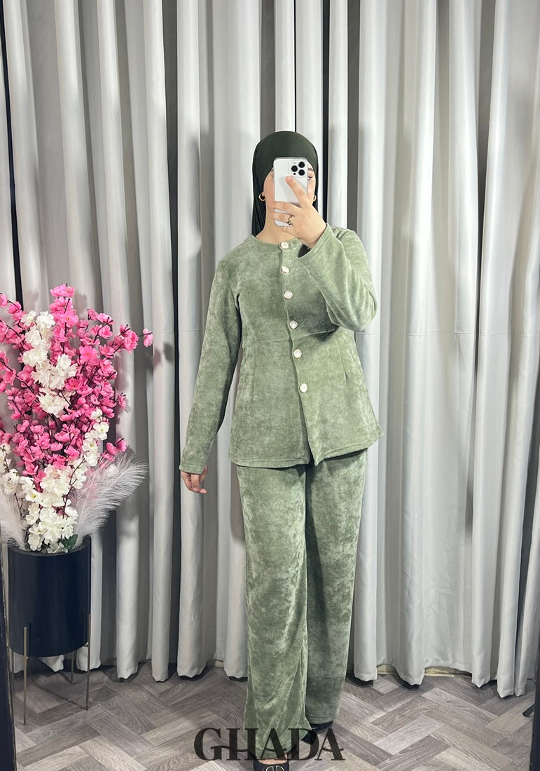 Elle est fabriquée d'un tissu maille de haute qualité, avec une coupe droite et fluide. pour garantir un ajustement parfait et un confort durable. Robe longue avec un col rond, les manches sont longues légèrement bouffantes avec de jolies pattes boutonnées.