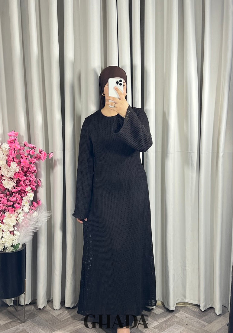 Ajoutez notre robe en maille chic signée GHADA, à votre garde-robe.