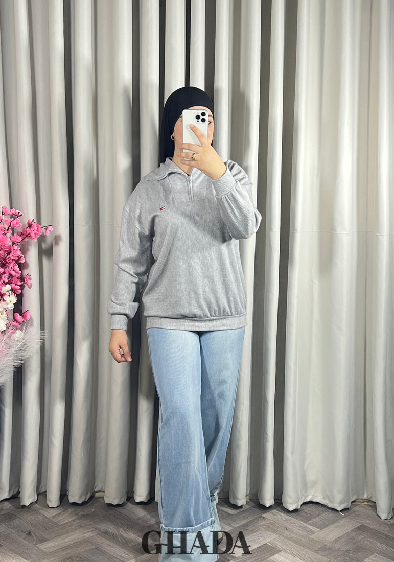 Pull en maile douce zippé à col en V
