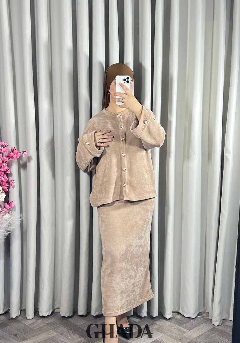 Ensemble en maille avec jupe en beige