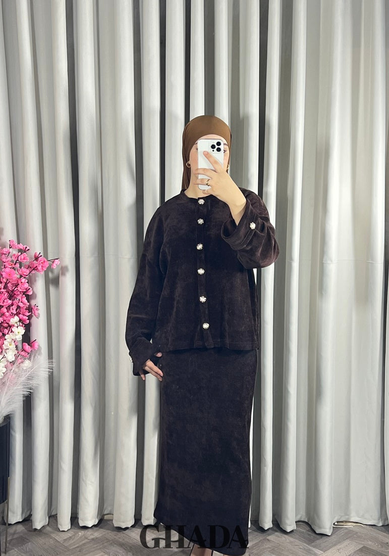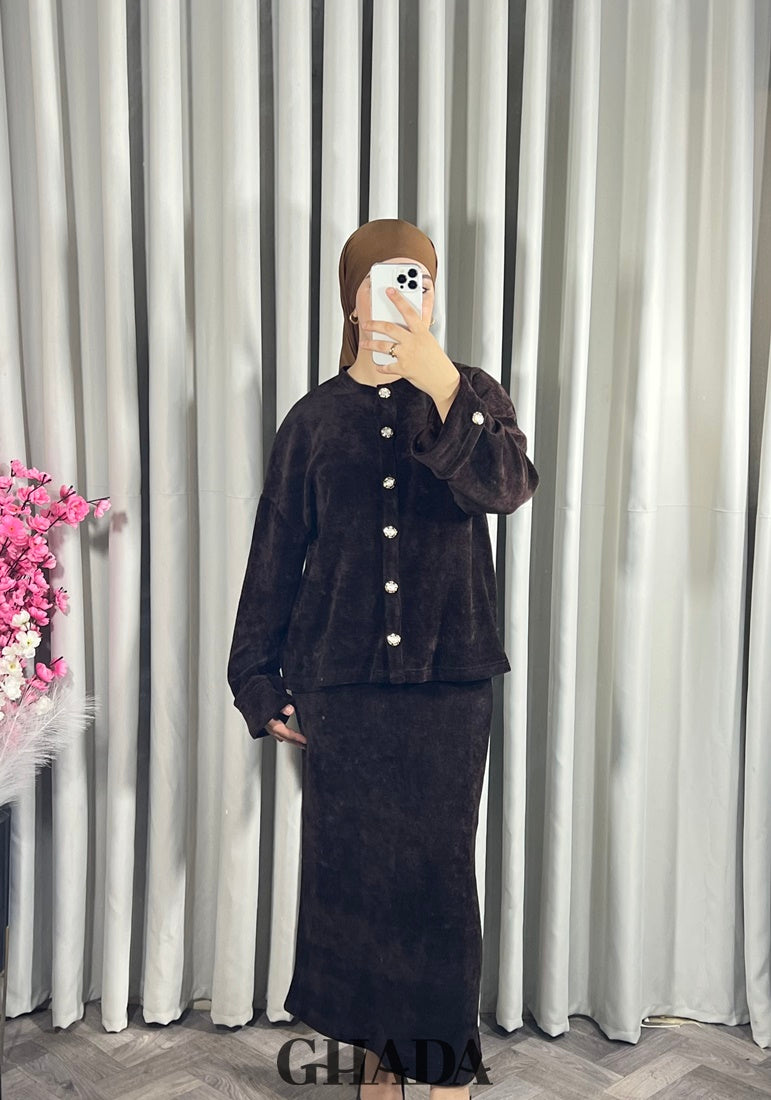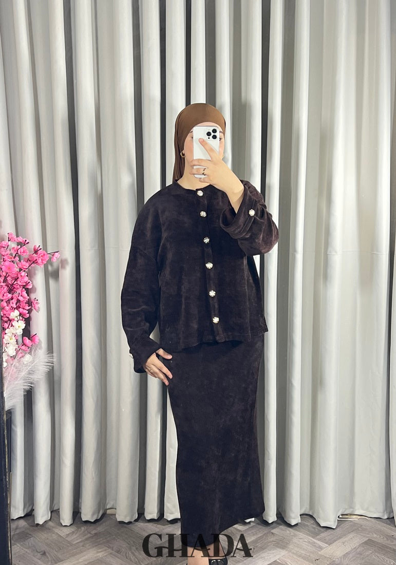 Ensemble en maille avec jupe en marron foncé