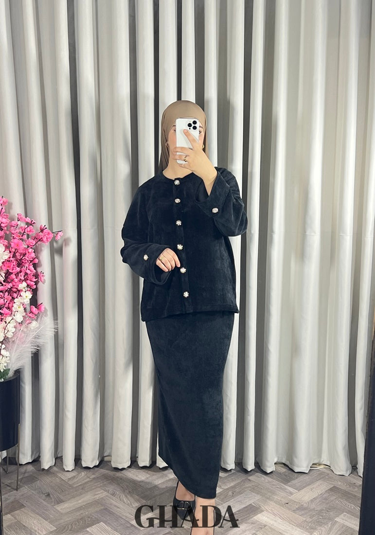 Ensemble en maille avec jupe en noir