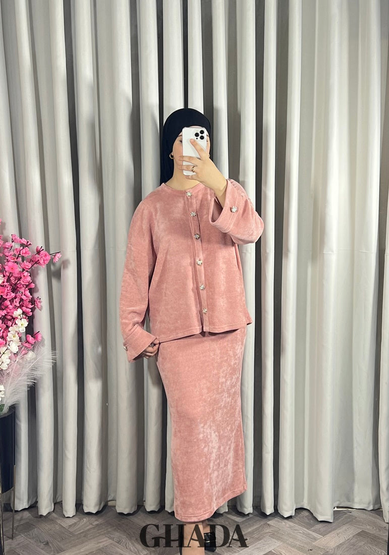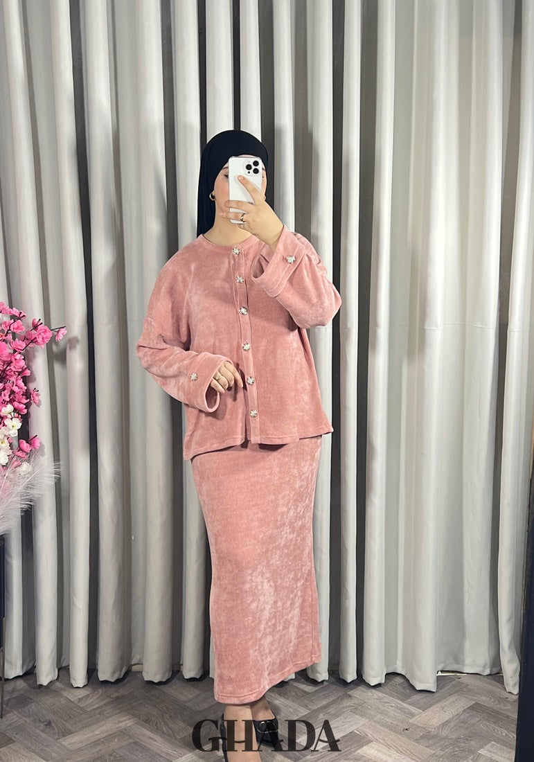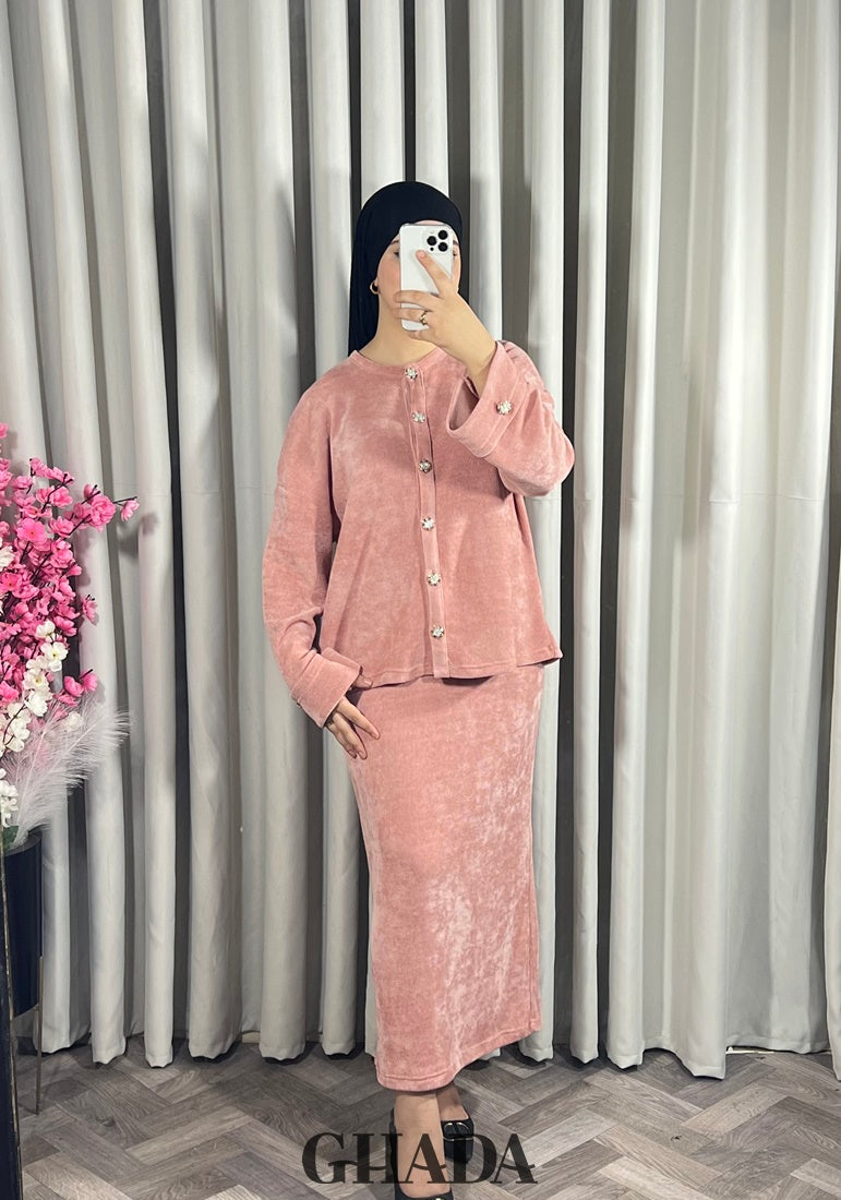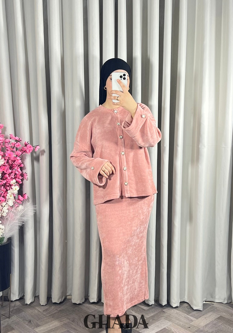 Ensemble en maille avec jupe en rose