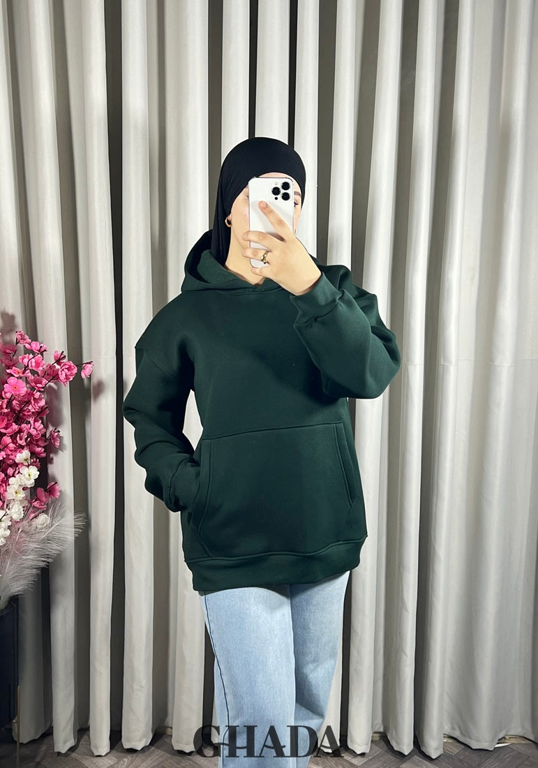 Sweat à capuche en vert bouteille