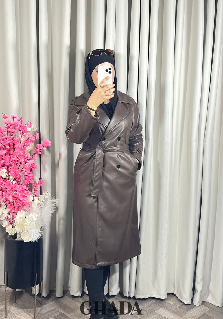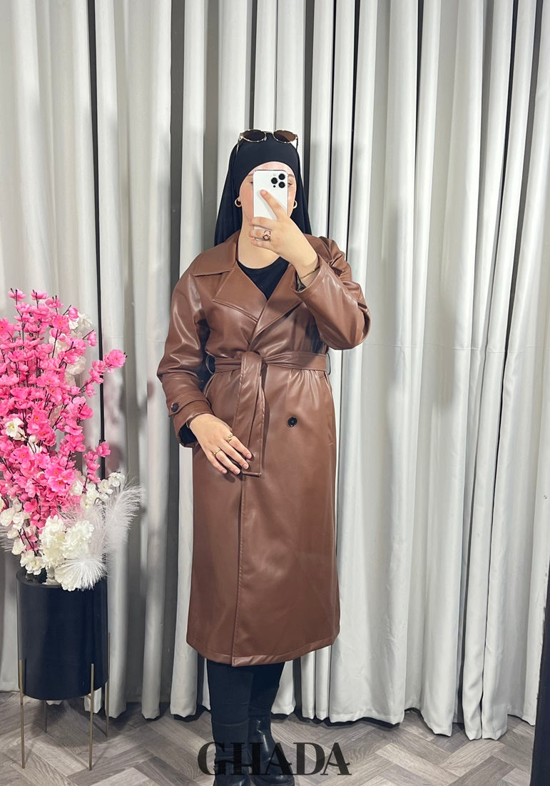 Ajouter un trench-coat en simili cuir magnifique à votre garde-robe signé GHADA, pour un look décontracté ou professionnel, mais surtout élégant et confortable.